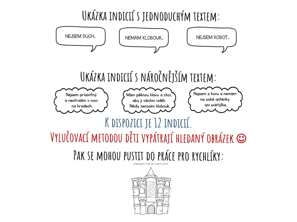 Pokud některé děti nemohou „běhat“ po třídě, mohou číst indicie přímo z vytištěného listu.