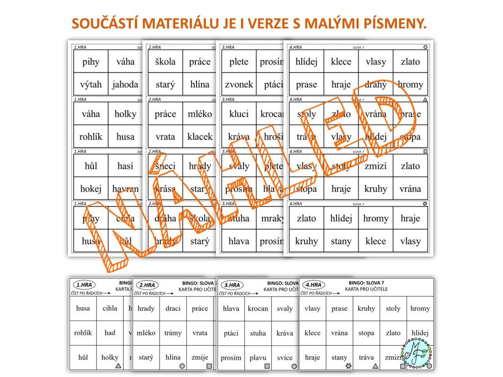 Materiál obsahuje 4 hry. Součástí materiálu je verze s velkými tiskacími písmeny i verze s malými tiskacími písmeny.