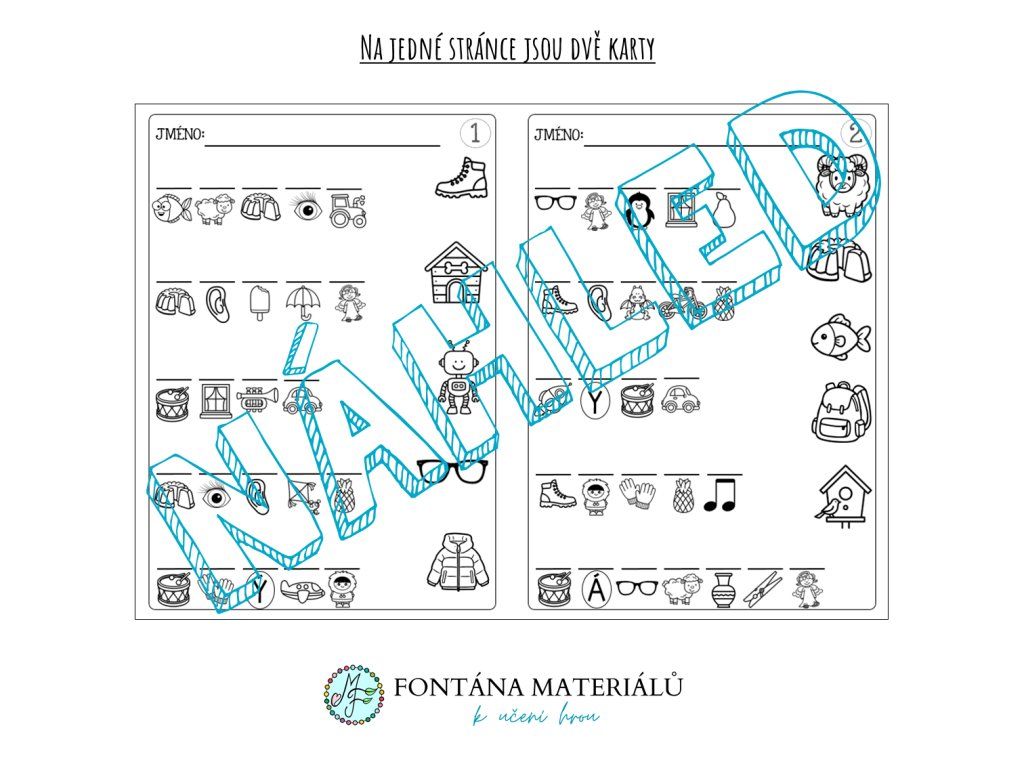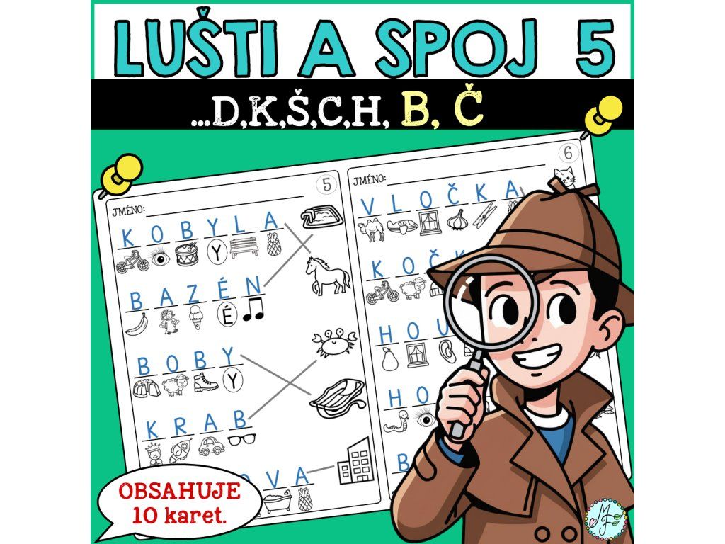 Nácvik čtení slov s písmeny B a Č. Procvičování sluchové analýzy (první hláska ve slově). Procvičování čtení s porozuměním (přiřazování obrázků ke slovům).