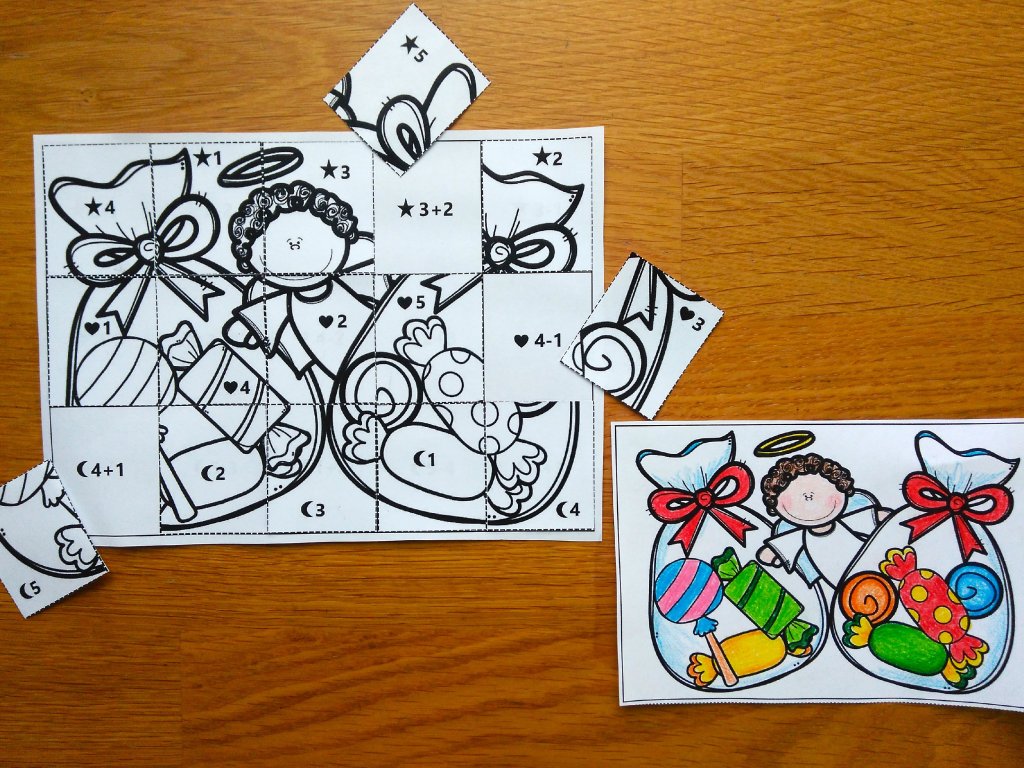 Děti dostanou pracovní list, který rozstřihnou podél přerušované čáry. Horní polovinu (s příklady) nechají vcelku, spodní polovinu (s obrázky a s výsledky) rozstříhají na části podél přerušovaných čar. Pak na každý příklad přilepí část obrázku se správným výsledkem. Příkladům musí odpovídat výsledek i symbol (hvězda, srdce, měsíc). Pokud vše udělají správně, vznikne obrázek. Stejný obrázek (v menším měřítku) pak mohou děti dostat jako odměnu za dobře odvedenou práci (součást materiálu).